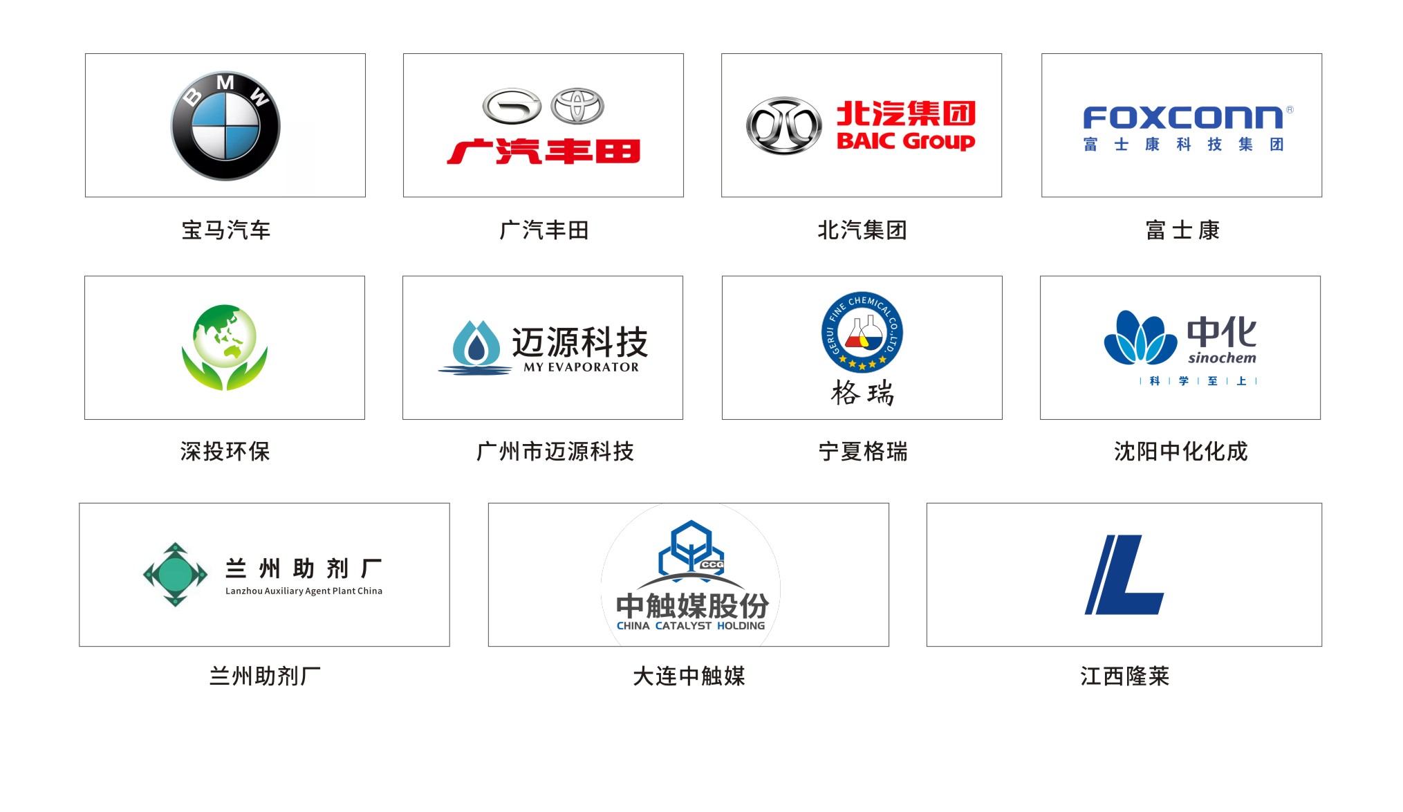 目前,公司已在成都、大連、蘇州、內蒙古等地設立了辦事機構,服務的客戶包括深投環保、寶馬汽車、富士康、廈門嘉戎、寧夏格瑞,蘭州助劑廠、江西隆萊、大連中觸媒等行業內領頭企業,在國內落地項目有170多家。